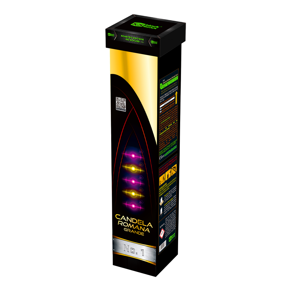 Lichterbündel aus 16 Römischen Lichtern mit Goldschweifkometen und Kometensternen in Purpur